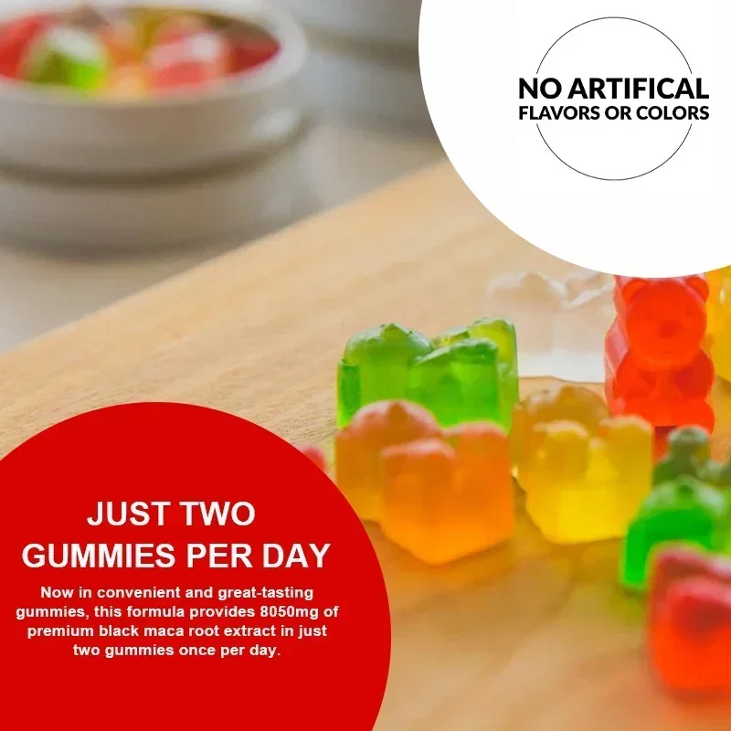 Black Maca Gummies - Supports Natural Health, Muscle Growth, Energy, Performance and Mood Supplement